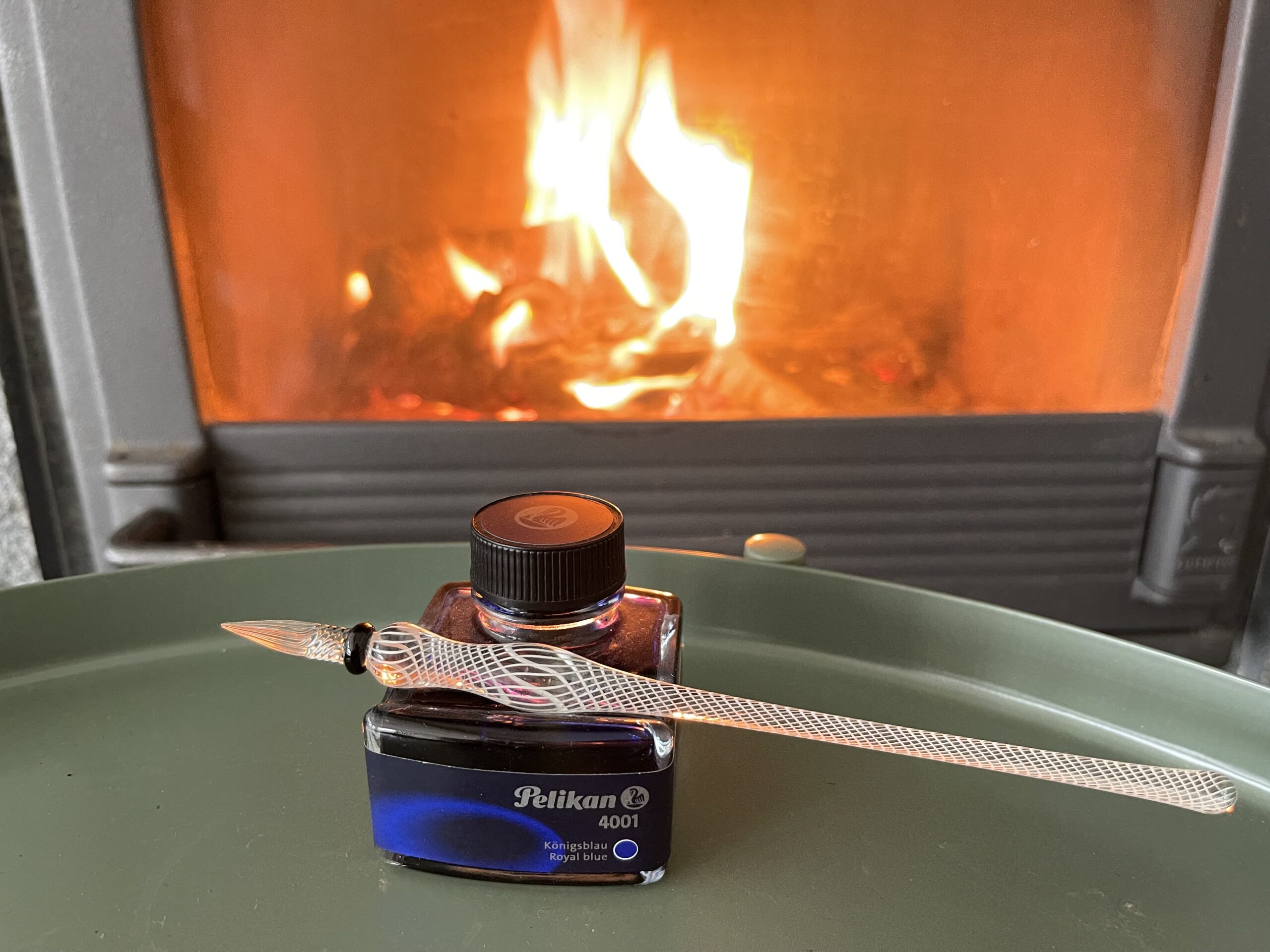Zum Totensonntag gab es die erste Gelegenheit den Kamin anzufeuern. Ganz nebenbei war ich auf der Suche nach einem schönen Platz, an dem ich Inspiration und Raum für einige Widmungen des Charly-Buches finden könnte.