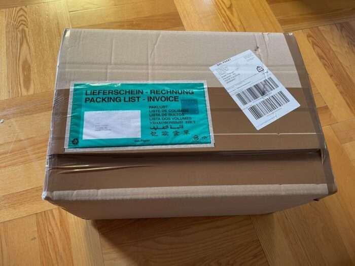 Siehe da, am nächsten Morgen wurde der Sendungserhalt korrigiert auf zwischen „vor einer halben Stunde bis in einer Stunde“, mit der nicht ganz unwichtigen Information, das Lieferfahrzeug sei noch einen (1!) Stopp entfernt. Da sah ich selbiges bereits die Höhen meines Domizils erklimmen.