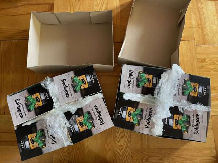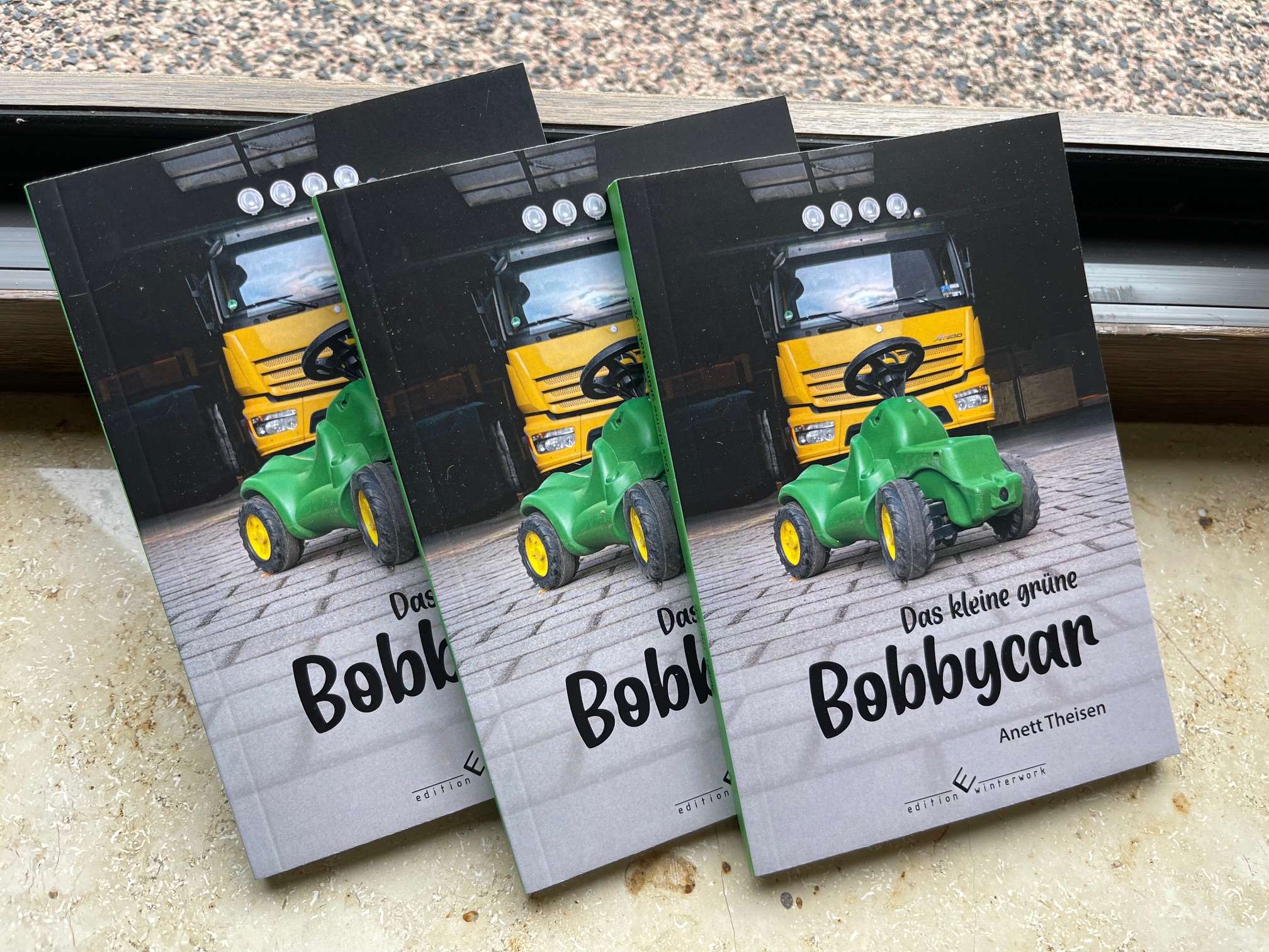 Es ist immer ein großer Moment, nach der langen Zeit des Schreibens, Korrigierens, Cover-Beredens, Text-Überprüfens, Hin- und Her-Überlegens und eben allem, was dem fertigen Buch so vorausgeht, dann ENDLICH das Objekt „in questionem“ in der Hand zu halten! In diesem Falle „Das kleine grüne Bobbycar“.