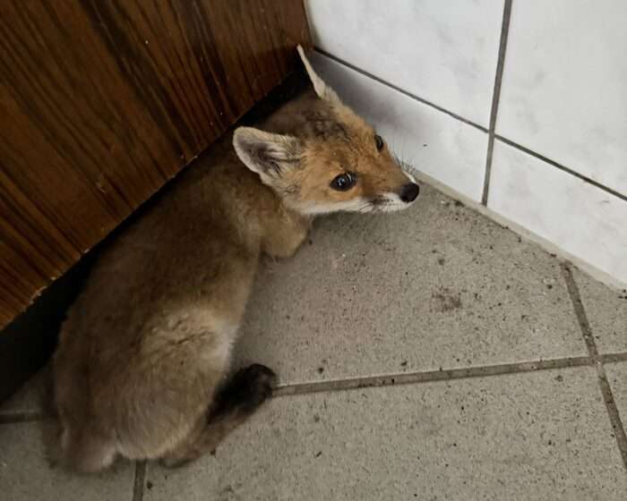 Bild unten: Auf frischer Tat ertappter Babyfuchs, der sich in den Wirtschaftsraum verirrt – und dort das Katzenfutter geräubert hatte. Er durfte selbstverständlich ungehindert wieder entfleuchen und wurde danach noch mehrfach rund ums Haus gesichtet.