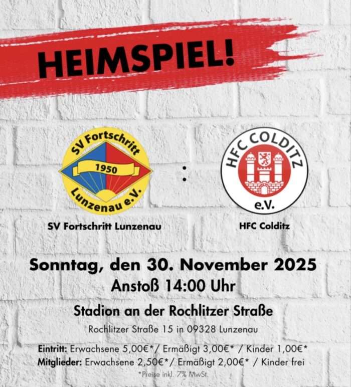 - Sonntag, 30.11.2025, 14-16 Uhr, im Stadion an der Rochlitzer Straße, Lunzenau